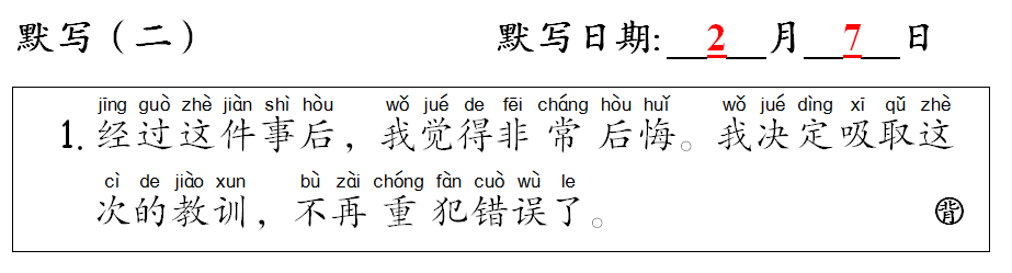 由于星期二(二月五日)是写作测试(全面性评价),因此默写(二)改为星期四。